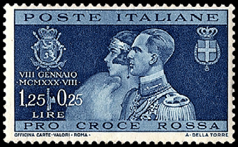 最初の切手(1930年、イタリア発行)=左