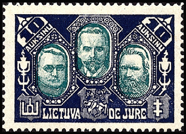 最初の切手/出身国最初の切手(1922年、リトアニア発行)=左