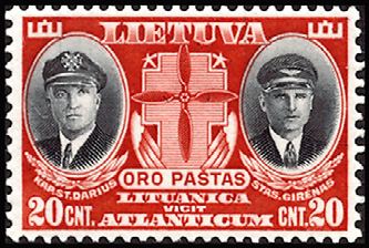 最初の切手/出身国最初の切手(1934年、リトアニア発行)=左