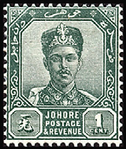 最初の切手(1896年、マレーシア・ジョホール発行)