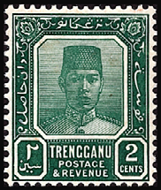 最初の切手(1921年、マレーシア・トレンガヌ発行)