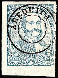 最初の切手(1885年、ペルー・アレキパ発行)
