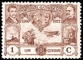 最初の切手/出身国最初の切手(1923年、ポルトガル発行)=中央上右