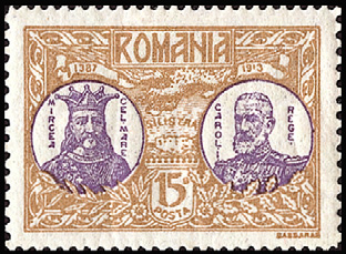 最初の切手/出身国最初の切手(1913年、ルーマニア発行)=左