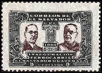 最初の切手/出身国最初の切手(1929年、エルサルバドル発行)=左