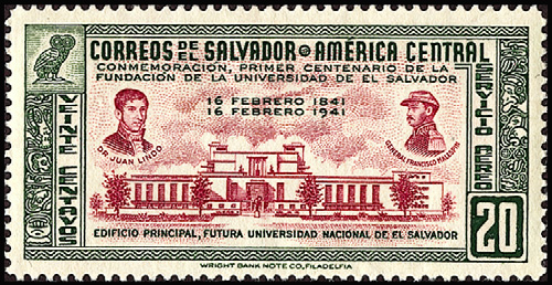 最初の切手/出身国最初の切手(1941年、エルサルバドル発行)=右