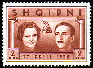 最初の切手/出身国最初の切手(1938年、アルバニア発行)=左