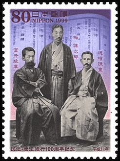 最初の切手/出身国最初の切手(1999年、日本発行)=左