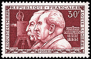 最初の切手/出身国最初の切手(1955年、フランス発行)=右