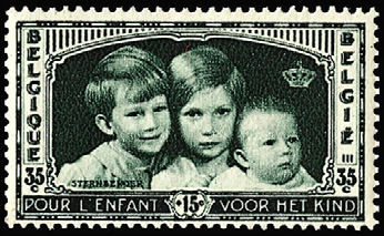 最初の切手/出身国最初の切手(1934年、ベルギー発行)=左