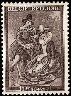 最初の切手(1939年、ベルギー発行)=右