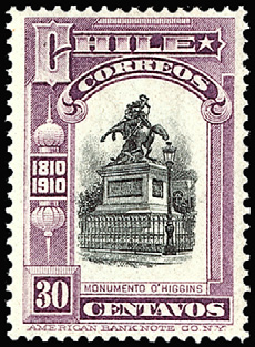 出身国最初の切手(1910年、チリ発行)(1911年、チリ発行)