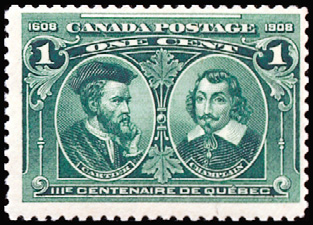 最初の切手/居住国カナダ最初の切手(1908年、カナダ発行)=右