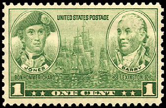 ジョーンズとバリーの肖像。帆船「ボノム・リシャール」と「レキシントン」