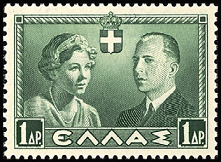 最初の切手/出身国最初の切手(1938年、ギリシャ発行)=左