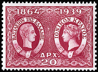 最初の切手/出身国最初の切手(1939年、ギリシャ発行)=左