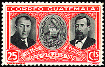最初の切手/出身国最初の切手(1935年、グアテマラ発行)=左