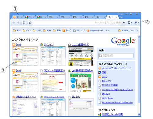 様々な機能はあると便利ですが、常に表示されていても困るだけです。その点Chromeはすっきりとワンボタンから選べます。