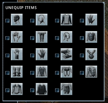 1クリックで 1 つ以上の特定のスロットからアイテムを装備解除できます。