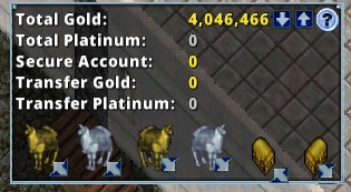 合計ゴールドの近くに 2 つの矢印ボタンがあり、下矢印を押すとカスタム量のゴールドを引き出すことができ、上矢印を押すとバックパックからすべてのゴールドが銀行箱に入金されます。
