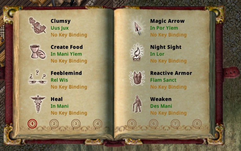 Spellbook を使用すると、呪文をマクロやホットバー スロットにドラッグできます。デフォルトの UI と比較すると、Pinco の UI は異なるデザイン (クラシック クライアントに似ています) を提供し、右クリックしてコンテキスト メニューを使用することでホットキーを呪文に割り当てることができます (そのため、マウスをドラッグして外に出す必要はありません)詠唱する魔法の書)。
