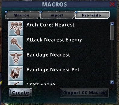 - 事前作成:インポートできる UI に含まれる事前作成マクロのリスト。Discordからこのセクションにさらに多くのマクロを提案できます。