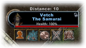 デフォルトでは、現在のターゲットには、あなたとターゲットの間の距離、ターゲットの健康状態、およびメインのコンテキスト メニューのアクションが表示されます。