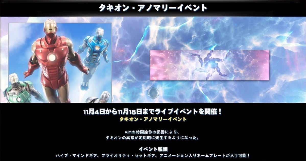 AIMの時間操作により、「タキオン・アノマリー」が定期的に発生するようになりました。このイベントが起こるたびに、各世界線のアベンジャーズが一つの場所に集い、力を合わせて世界の脅威に立ち向かいます。