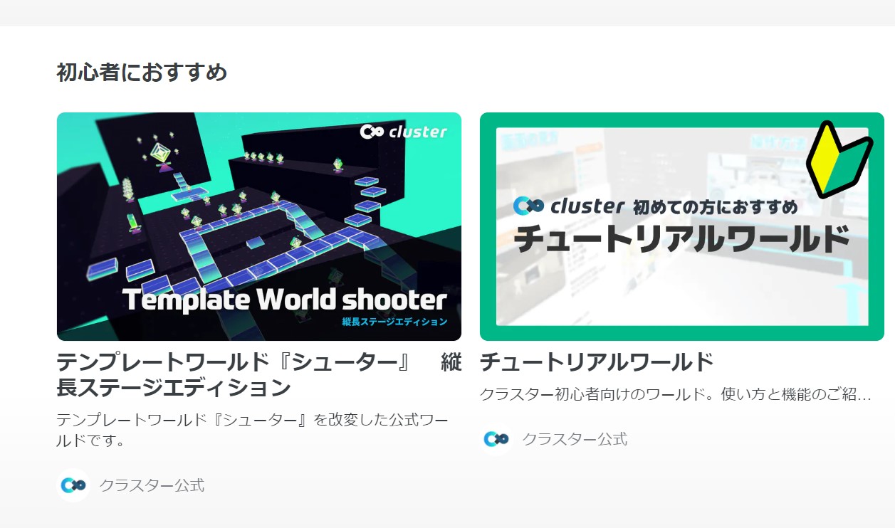 clusterには、チュートリアルワールドという初心者向けのワールドがあります。