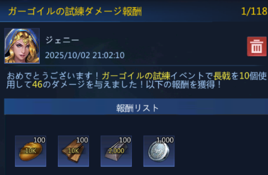 - イベントは3日間開催され報酬受け取り期間が1日(ガーゴイルへの攻撃不可なのでアイテムはイベント3日間中に使っておきましょう)ある