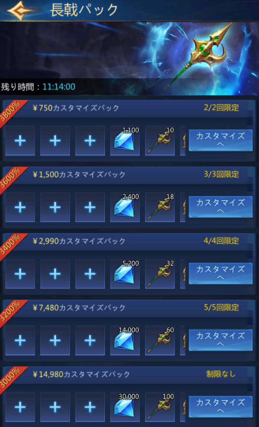 - 長戟パックはDIYパックイベントのような形式で長戟とカスタマイズしたアイテムを1つのパックとして購入できる