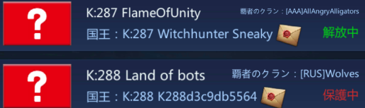 - 現在K287まで解放中。約1週間ごとに1国解放状態になる