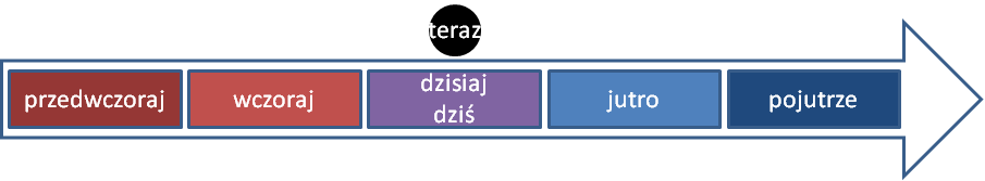ポーランド語では przedwczoraj と pojutrze.przed-wczoraj と po-jutro.同じ構造をしてますね.