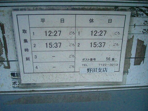 (千葉県)野田郵便局取集時刻掲示(事業会社時代)