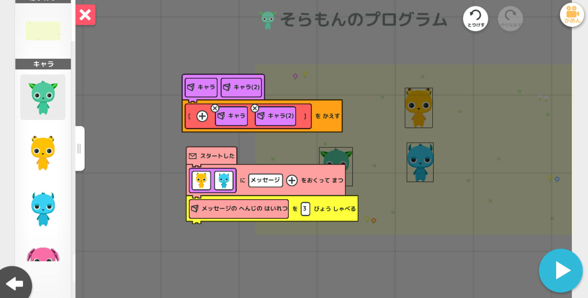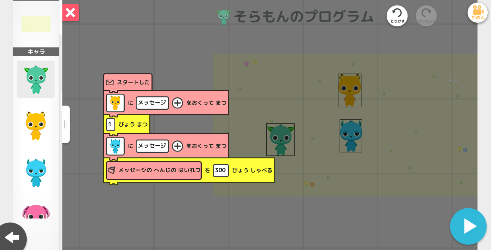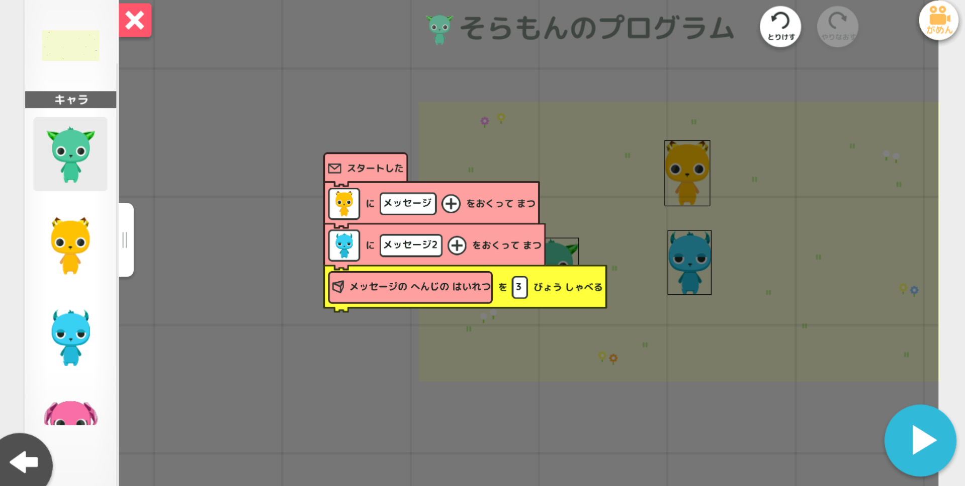 - メッセージを送るにしてる仕様上、キャラが複数体いるとうまくいかない