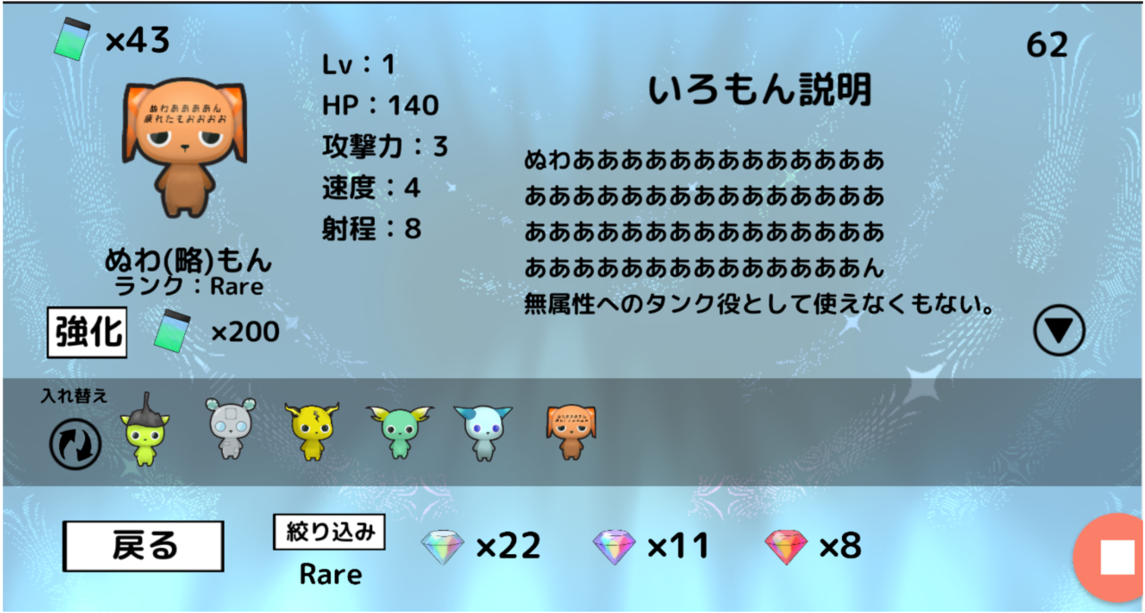 ランクが高いほど強力な性能ですが、編成できる数は少なくなります。
