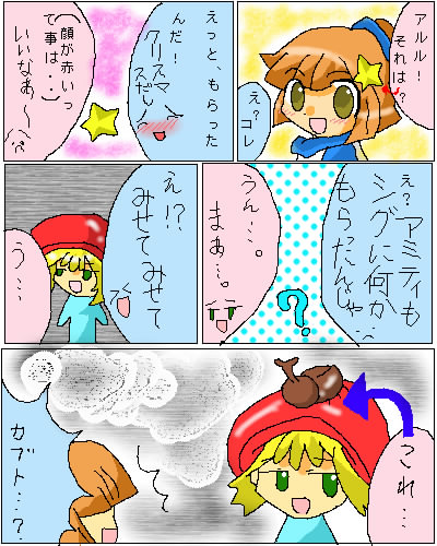 - アミティに可愛い顔させなくてごめんなさい>< アルルは誰にプレゼントもらったの?と思う方はご自由にご想像してね^^ -- 凛 (2007-11-26 16:17:52)