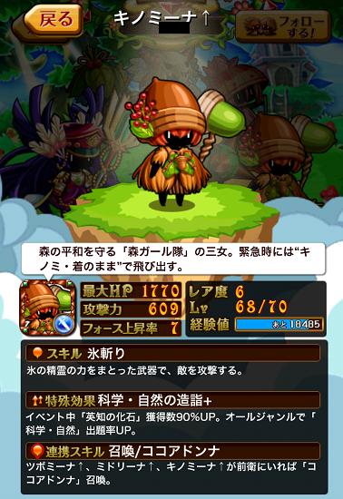 森の平和を守る「森ガール隊」の三女。緊急時には“キノミ・着のまま”で飛び出す。