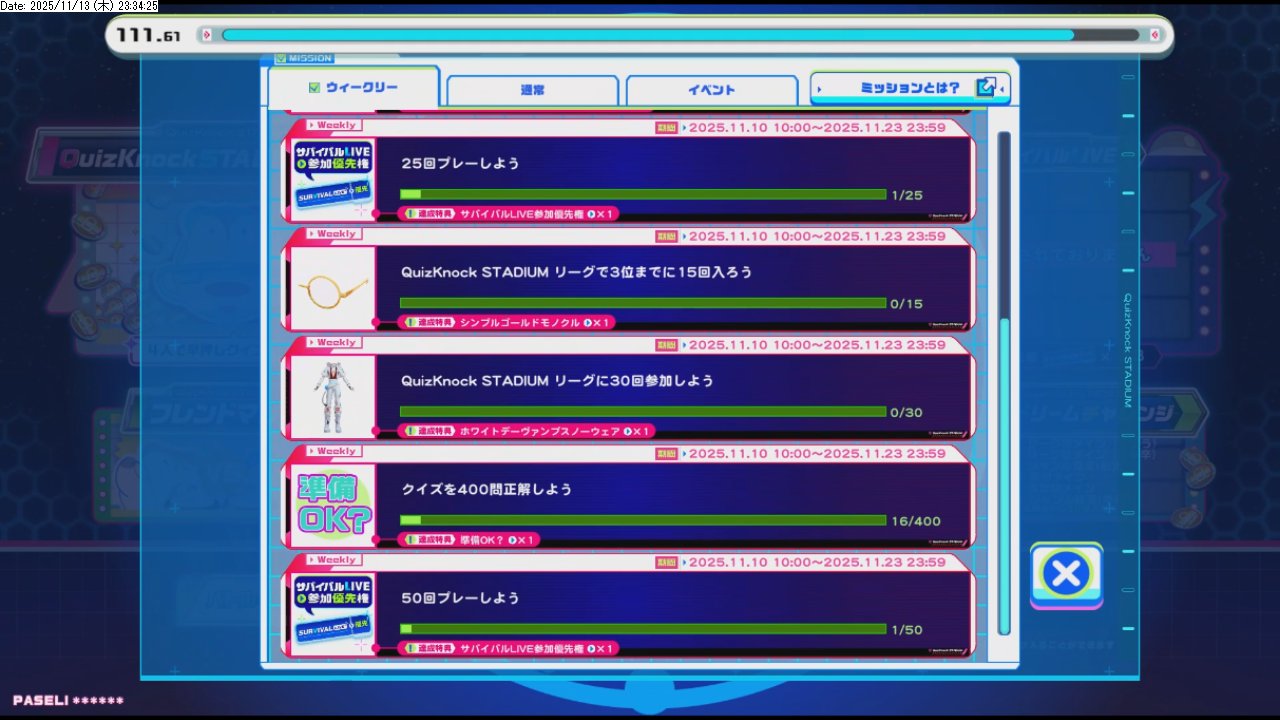 | 25回プレーしよう | サバイバルLIVE参加優先権 |