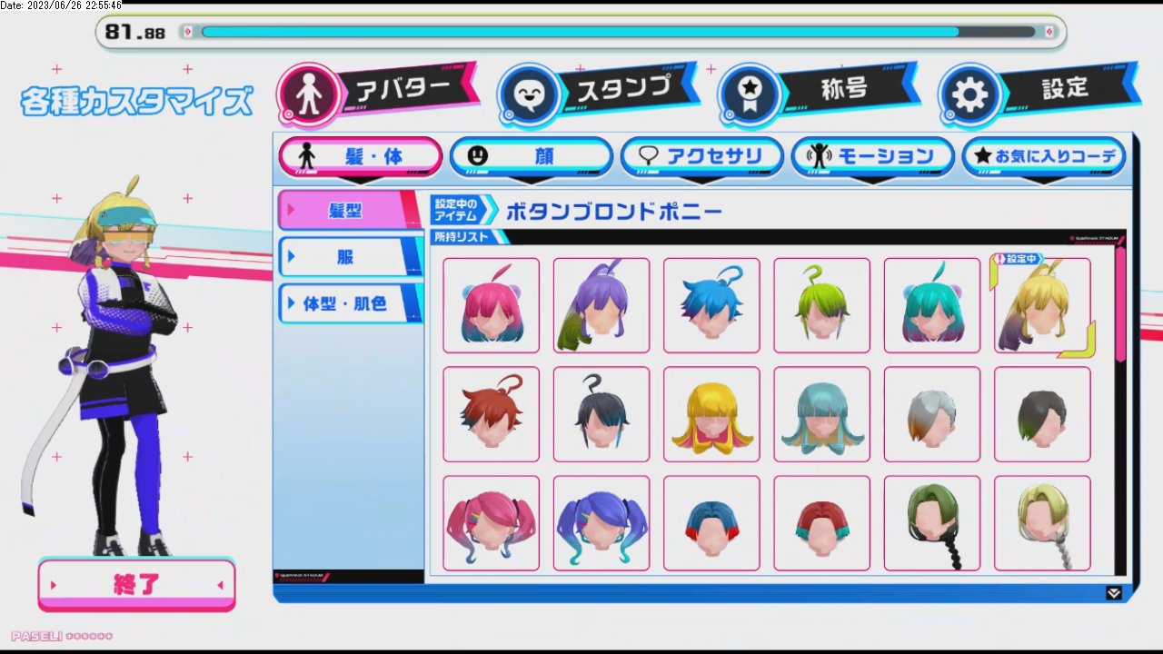 | レトロチックブルー外ハネ | 髪 | B | - | - | 2022/3/10 | バトルギフト 「デジスポーティ」 |