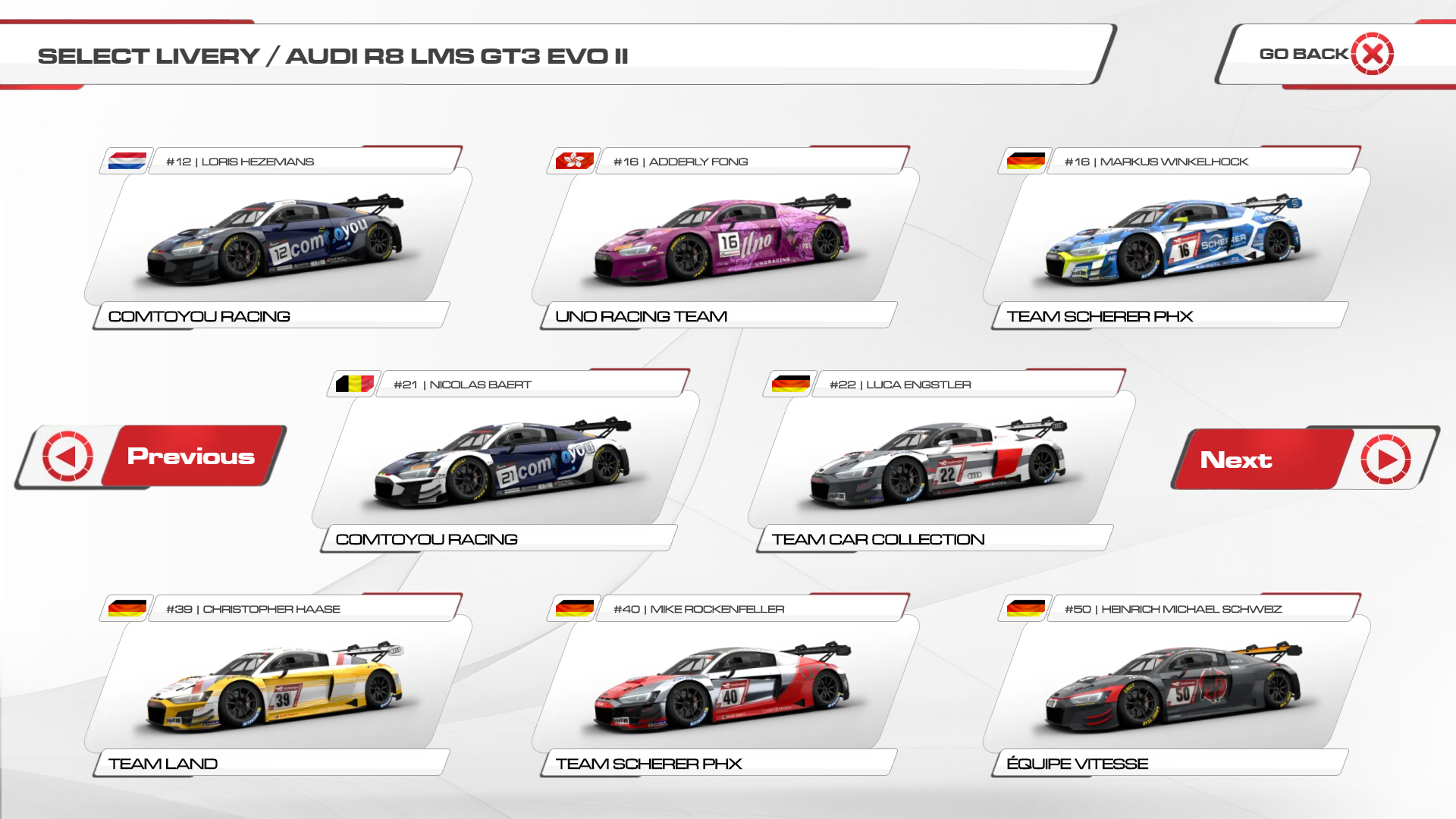 COMTOYOU RACING | LORIS HEZEMANS | 12 | 2023 | GT World Challenge Europe Endurance Cup | ハチマキ、ゼッケンは架空 | https://car-racing-world.fandom.com/ru/wiki/Audi_R8_LMS_GT3_EVO_II_No12_-_ComToYou_Racing | |