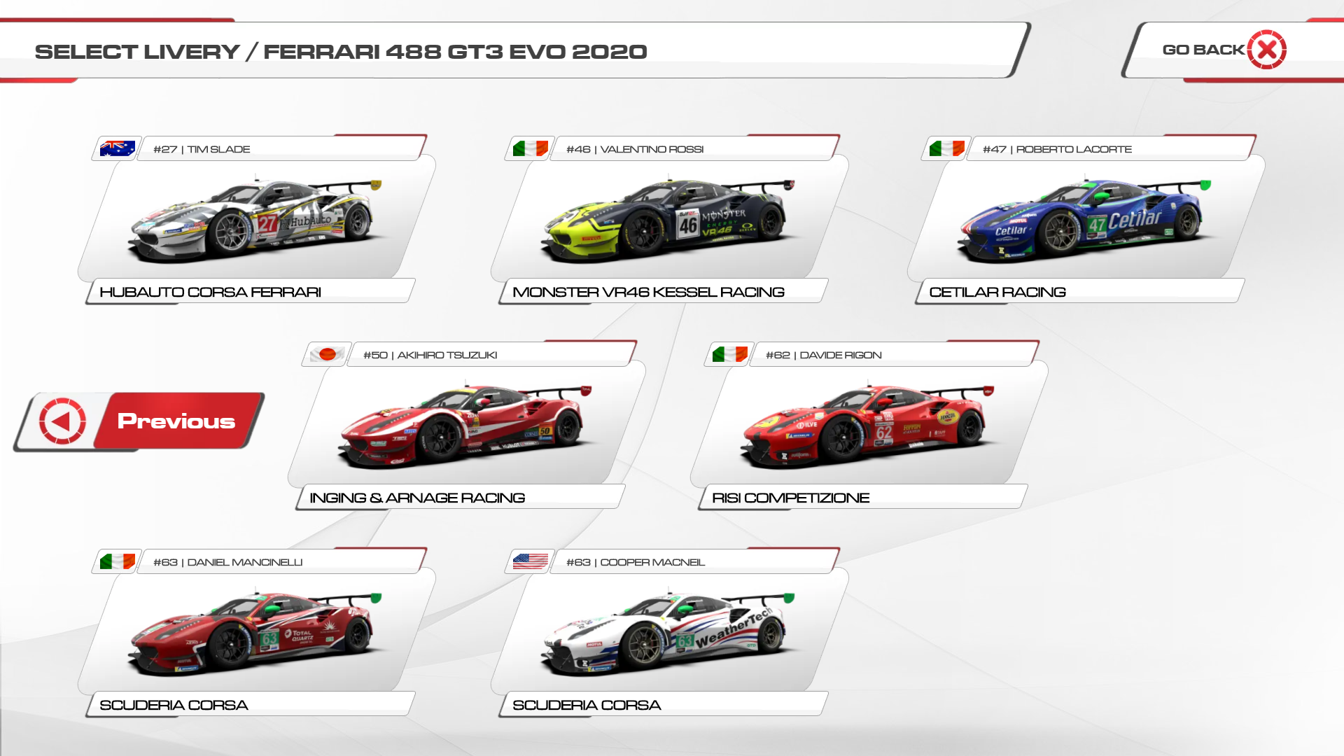 「FERRARI 488 GT3 EVO 2020 Livery」をウィキ内検索