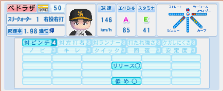 通算成績 防御率2.99 12勝12敗117S 奪三振126
