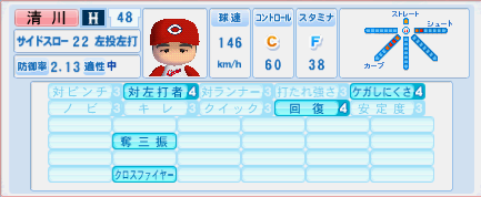通算成績 防御率2.94 13勝10敗12S 奪三振375