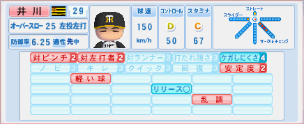 シーズン成績 防御率6.25 2勝3敗0S 奪三振53