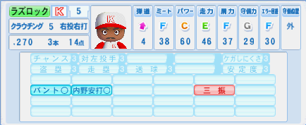 大リーグで首位打者を取るなど活躍していたが、京浜アスレチックス入団時にはかなりの高齢となっており、肉体の衰えが原因の打撃不振で2軍落ちする。プライドをズタズタにされ、鬼の形相で練習し、1軍に上がるとセーフティバントなどを織り交ぜ、優勝のかかるシーズン後半に活躍した。