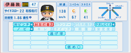 当時の野村克也監督からは「とりあえず伊藤を出しておけば大丈夫」と継投が上手くいかない場面で絶大な信頼を寄せられており、当時の推定年俸は8000万円と高額で、縁の下の力持ちであった。
