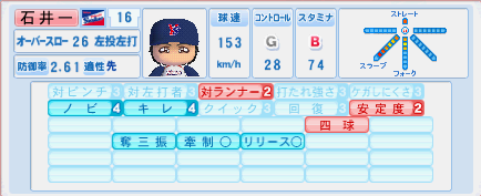豪速球と鋭いスラーブ、古田も「どこにいくか分からない」という荒れ球を武器に、97年はノーヒットノーラン、日本シリーズでの数々の好投など大舞台に強かった。