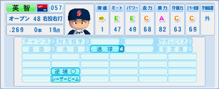 プロ野球界で史上屈指の俊足・強肩を誇り、主に守備固めや代走で活躍した。その強肩はメジャーのスカウトが守備固め要員として英智に注目することもあった。