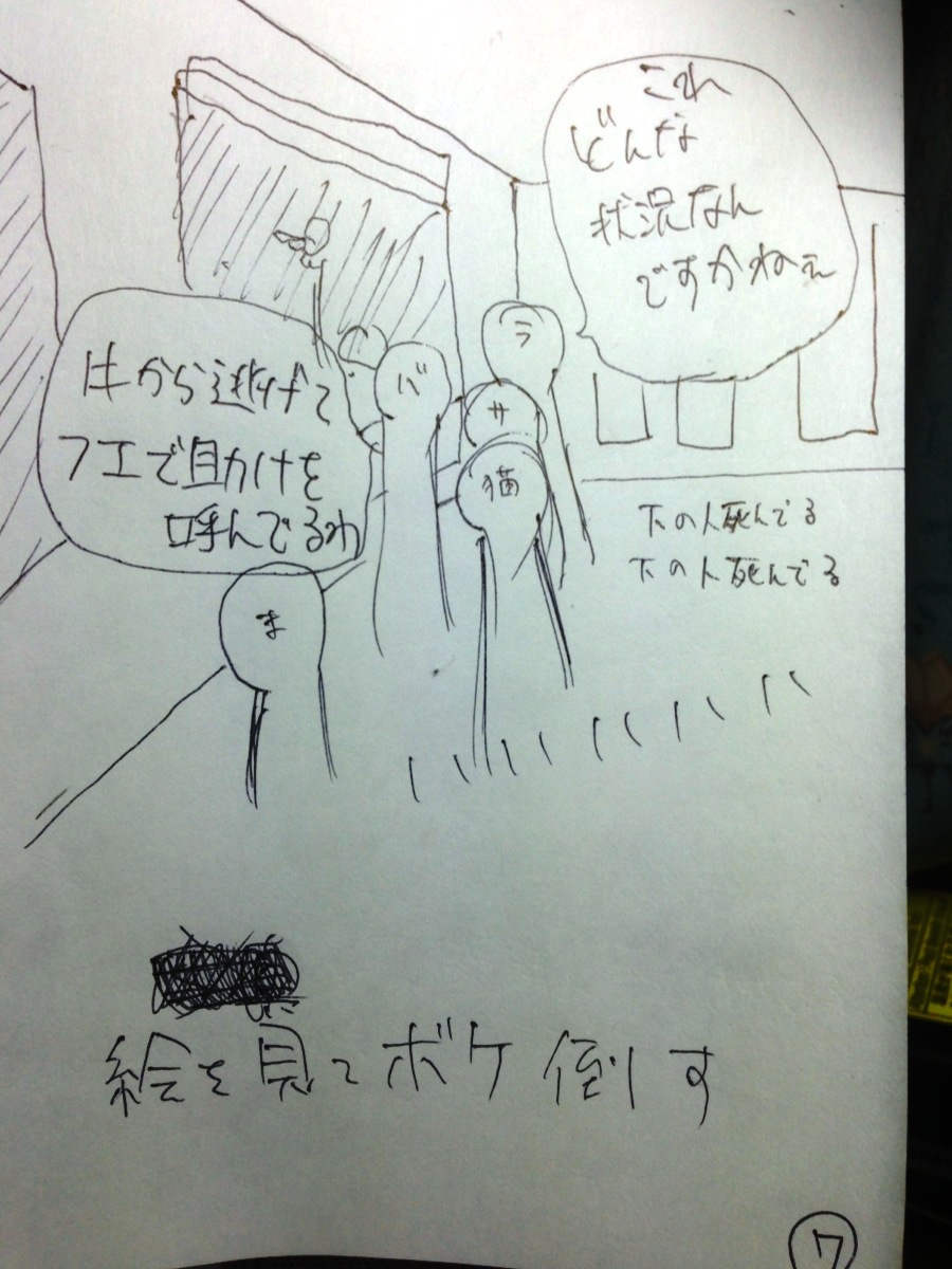そのあと、伝達オブジェを取り行う。何をどう聞き間違ったのか、全く絵が再現できず、ワースト3連続奪取でみごと最下位。